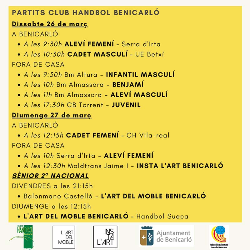 Aquest cap de setmana 9 partits de la base del Club Handbol Benicarló i 2 de l'equip de 2ª Nacional