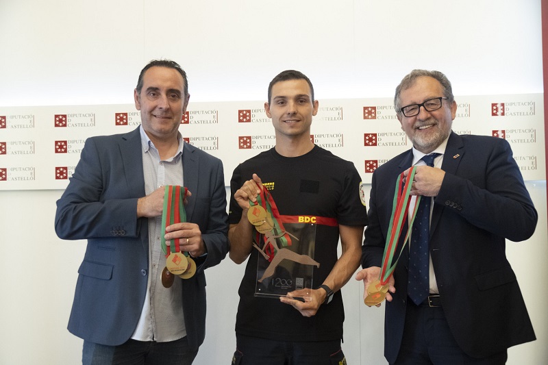 José Martí felicita el bomber de la Diputació, José Luis Carrión, per les seues 8 medalles en els jocs mundials per a bombers celebrats a Lisboa