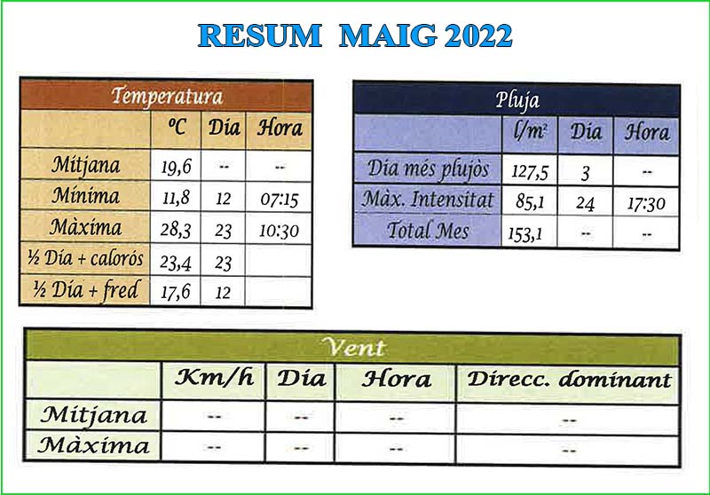 Resum climatològic Maig 2022 a Vinaròs