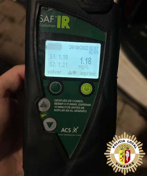Denunciat per conduir amb una taxa d’1.18mg/l en aire espirat
