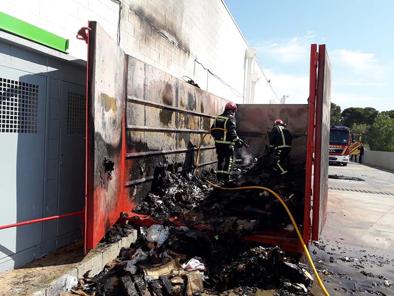 Incendi a un contenidor industrial en el centre comercial de Benicarló