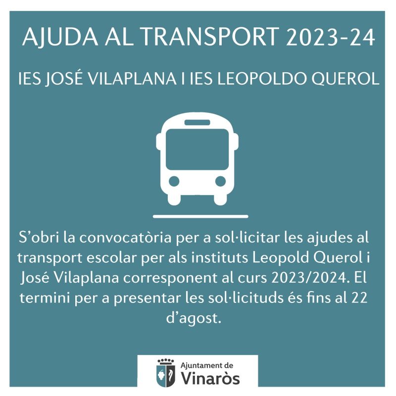 Convocatòria oberta per a sol·licitar les ajudes al transport escolar per als instituts Leopold Querol i José Vilaplana corresponent al curs 2023/2024