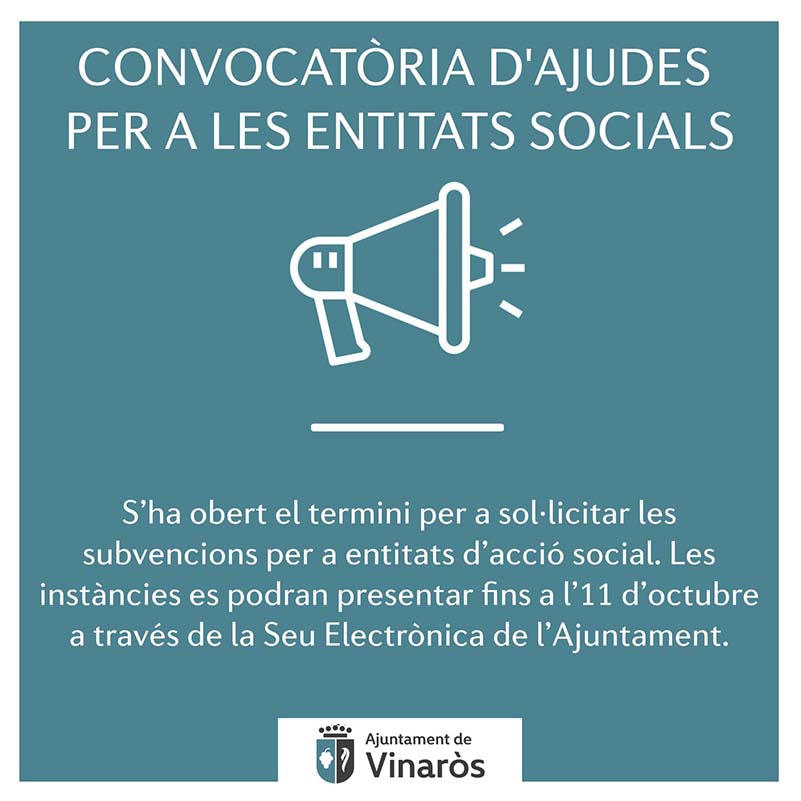 L’Ajuntament obre la convocatòria d’ajudes per a les entitats socials