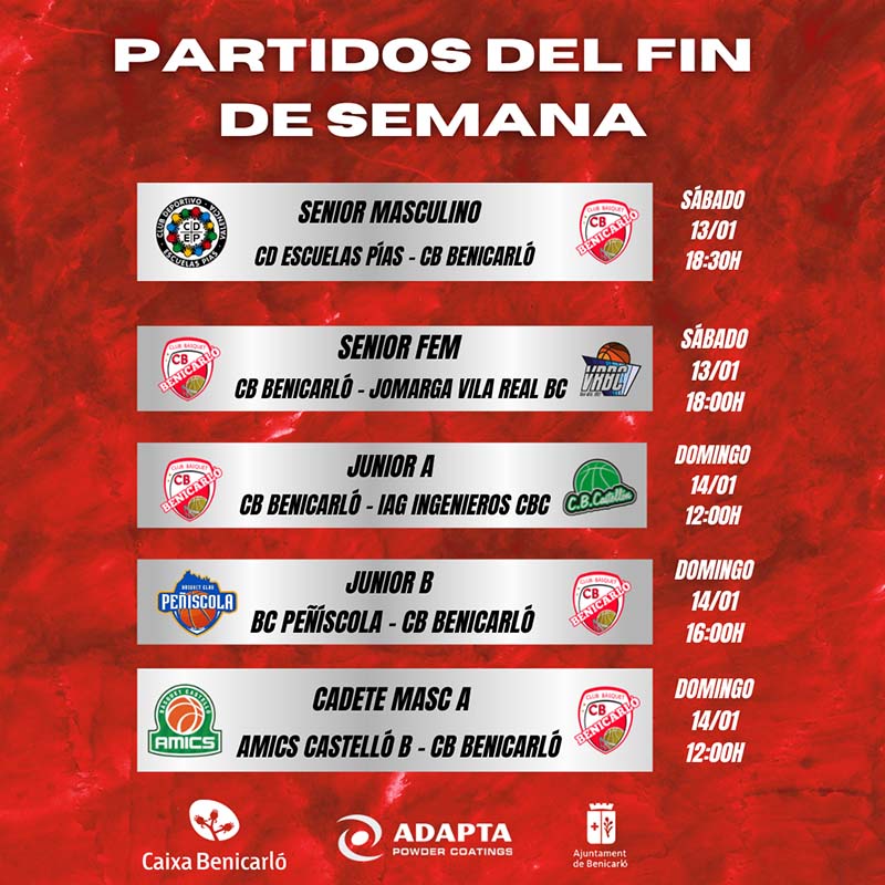 Partidos fin de semana del Club Basquet Benicarló (13-13/01/2024)