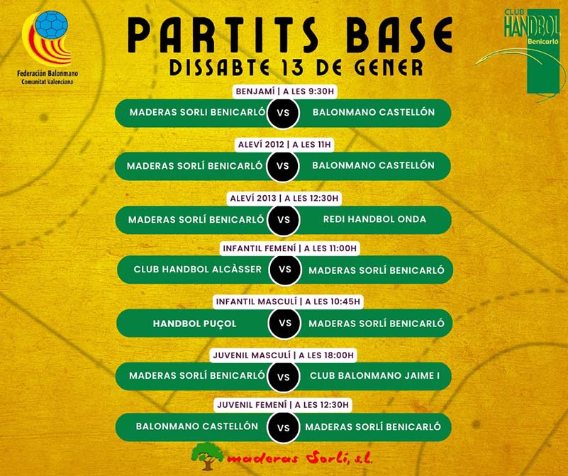 Partits del Club Handbol Benicarló d’aquest dissabte 13 de gener