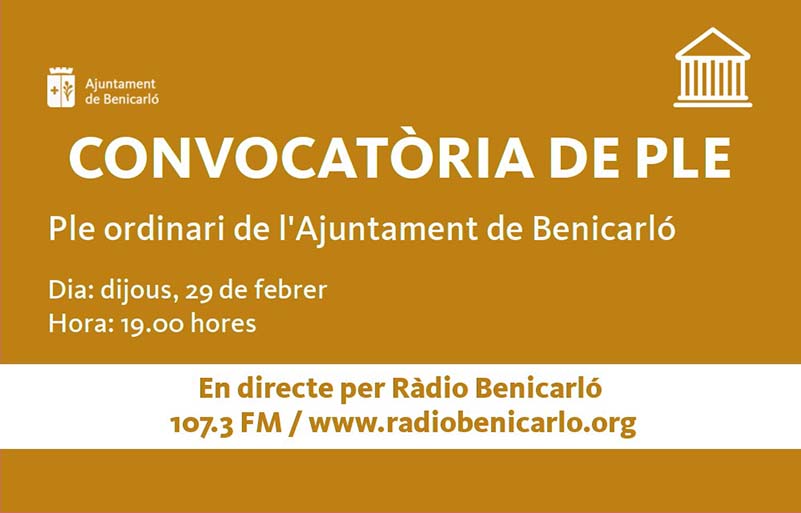 Ordre del día del Ple Ordinari de febrer a Benicarló