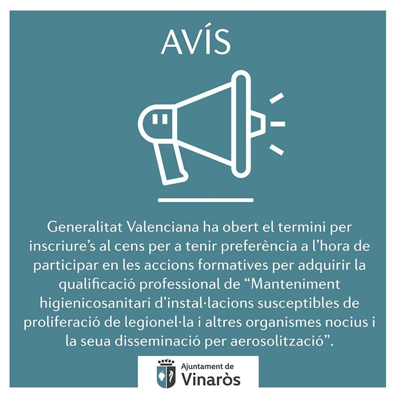 La Generalitat Valenciana obri el termini per participar en els cursos de formació contra la legionel·la