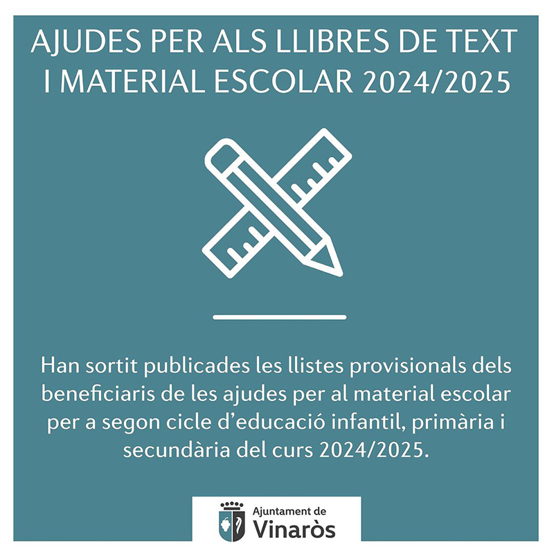 Vinaròs publica la llista provisional de les ajudes per al material escolar