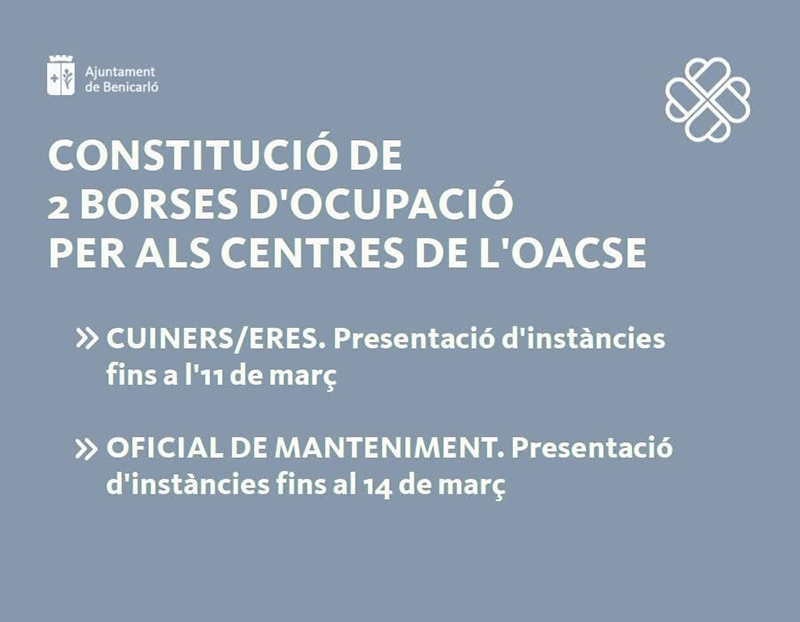 Constitució de dos borses d’ocupació per als centres de l’OACSE de Benicarló