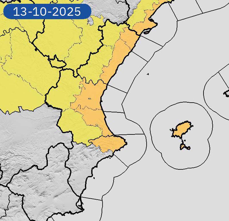 Alerta taronja per pluges en gran part del litoral de la Comunitat Valenciana