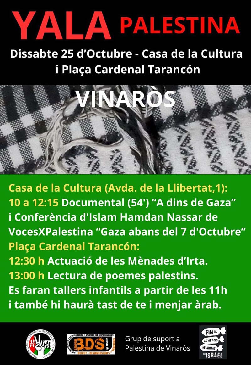 El Grup de Suport a Palestina de Vinaròs organitza la segona edició de “Yala, Palestina”