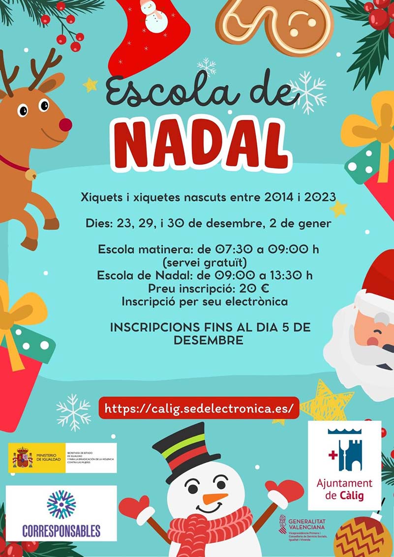 Càlig oferirà una nova edició de l’Escola de Nadal per oferir oci i entreteniment als xiquets durant les vacances