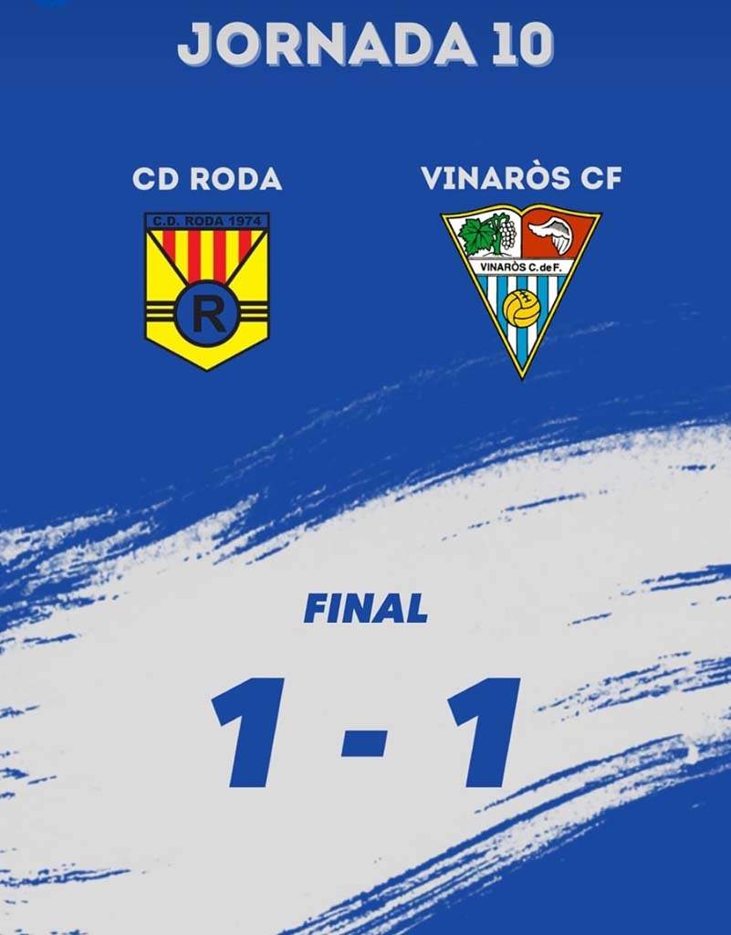 El Vinaròs C.F. i el C.D. Roda “B” empaten en la desena jornada de la Primera FFCV