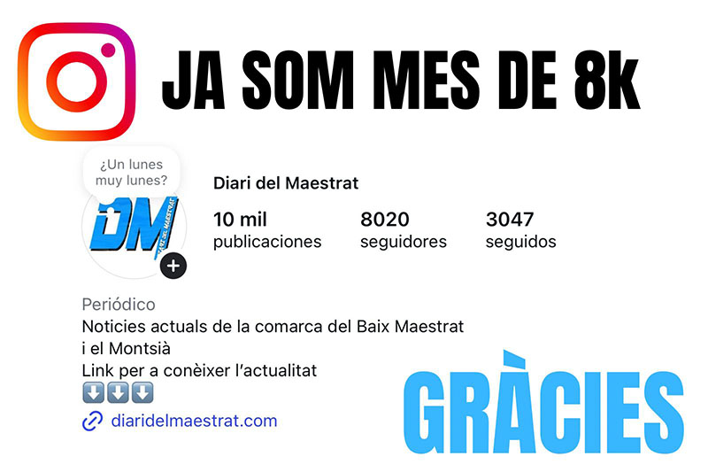 Diari del Maestrat supera els 8.000 seguidors a Instagram i continua creixent en totes les plataformes