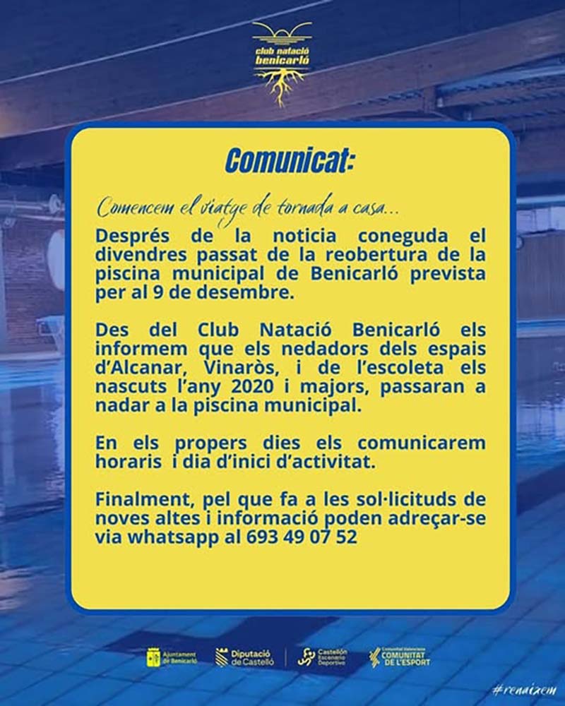 El Club Natació Benicarló torna a entrenar a casa després de més de cinc anys