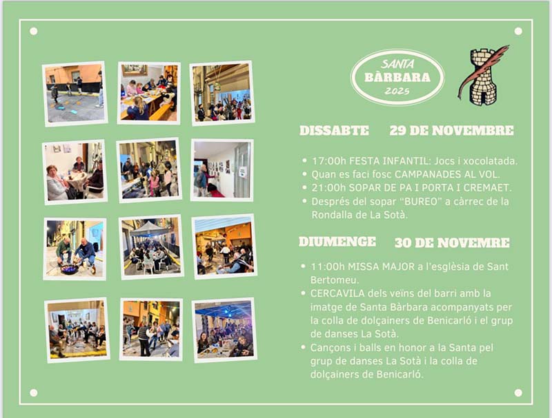 El barri de Santa Bàrbara de Benicarló celebrarà la Festa 2025 amb activitats per a totes les edats el 29 i 30 de novembre