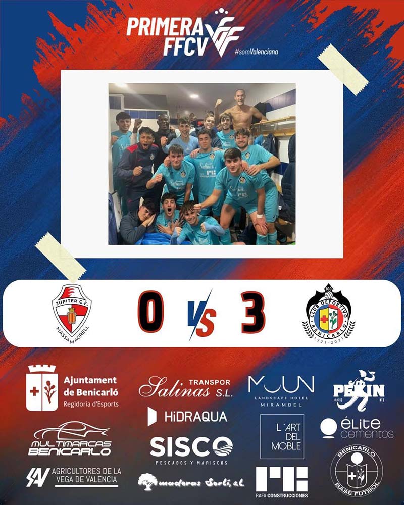 El CD Benicarló torna a brillar a domicili i s’endú una victòria contundent davant el Júpiter CF Massamagrell (0–3)