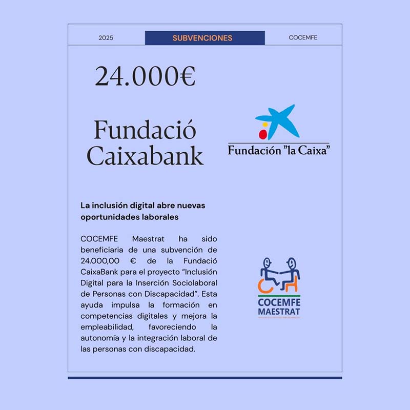 COCEMFE Maestrat rep una subvenció de 24.000 euros de la Fundació Caixabank