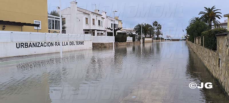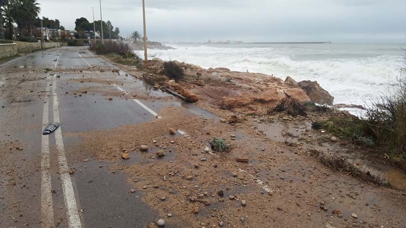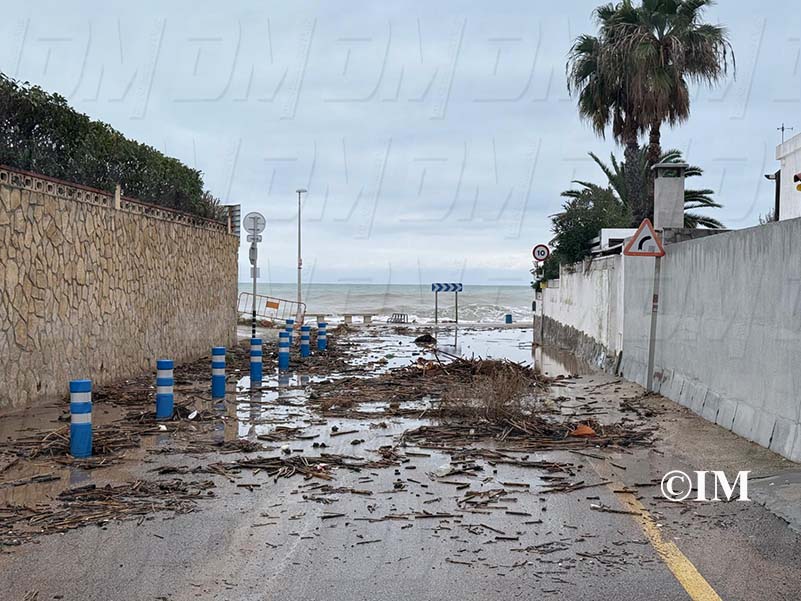 Tallada la carretera de la Ratlla del Terme entre Pníscola i Benicarló per acumulació d’aigua a causa del temporal marítim