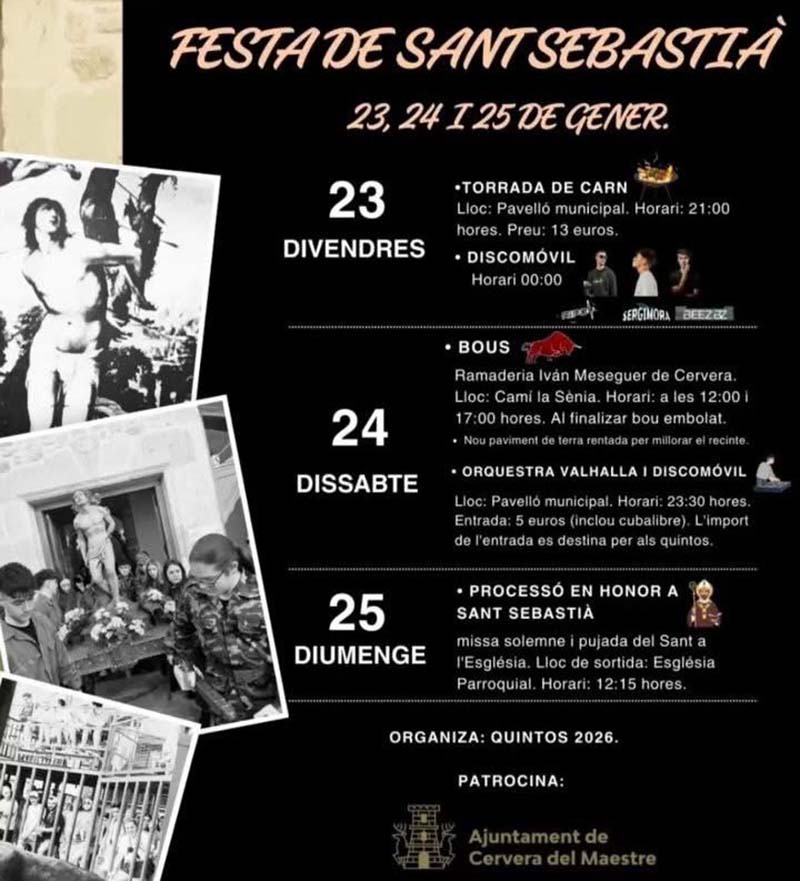 Cervera del Maestre celebrarà la Festa de Sant Sebastià els dies 23, 24 i 25 de gener