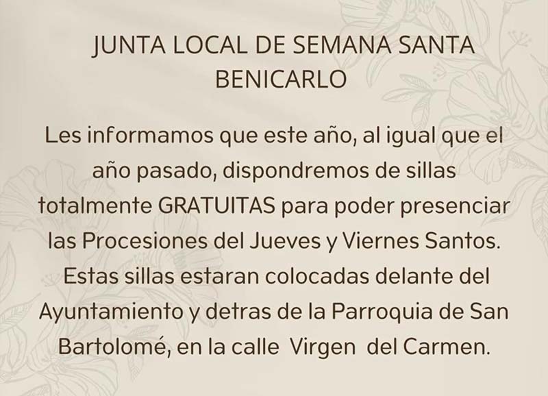 Cadires gratuïtes per a veure les processons de Setmana Santa a Benicarló