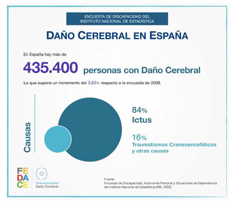 - El Daño Cerebral Adquirido es la principal causa de discapacidad permanente en España, con 52.451 personas afectadas en la Comunitat Valenciana, como consecuencia de haber sufrido un ictus, un traumatismo craneoencefálico o un tumor cerebral, entre otras causas
