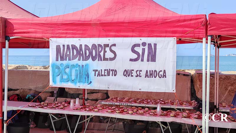 En la zona d’arribada, a més de la zona d’avituallament i el pòdium, s’han pogut veure pancartes demanant una piscina municipal i solucions al fet d’haver d’abandonar la piscina Servol.