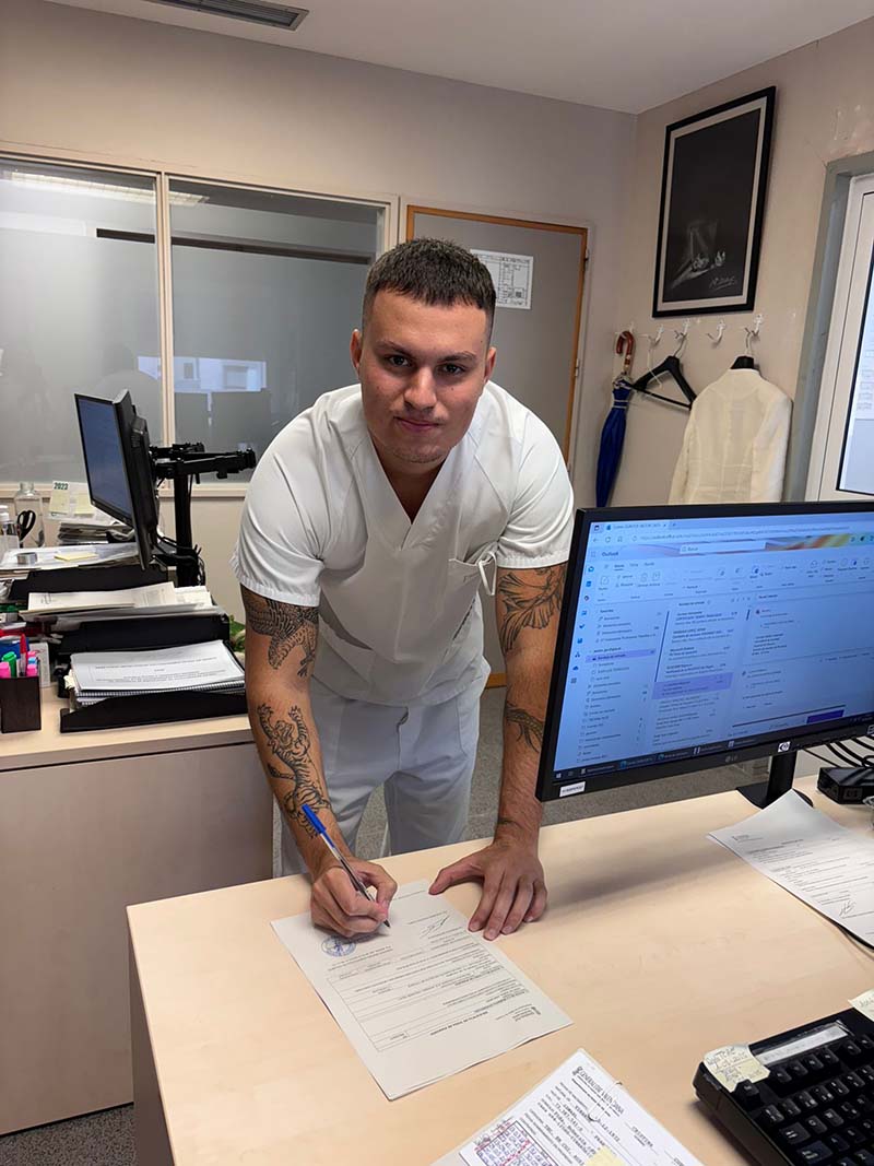 Con tan solo 22 años logró superar unas exigentes oposiciones, demostrando una madurez y una vocación admirables. Tras formarse en el Instituto Vilaplana de Vinaròs, hoy, con 23 años, inicia una nueva etapa profesional que llena de emoción y felicidad a todos los que lo queremos.