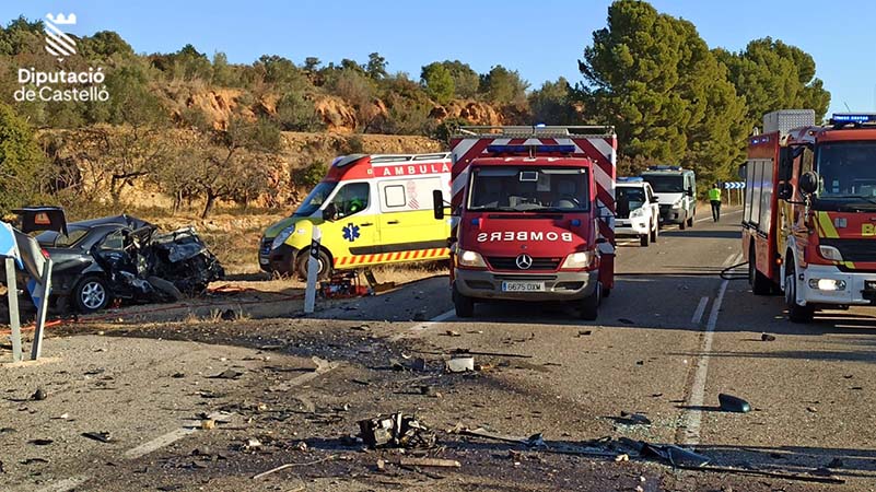 - Sobre las 9:35 horas de hoy sábado 30 de diciembre, colisión frontal entre dos turismos, en la carretera N-232 punto kilométrico 19, del término municipal de Traiguera