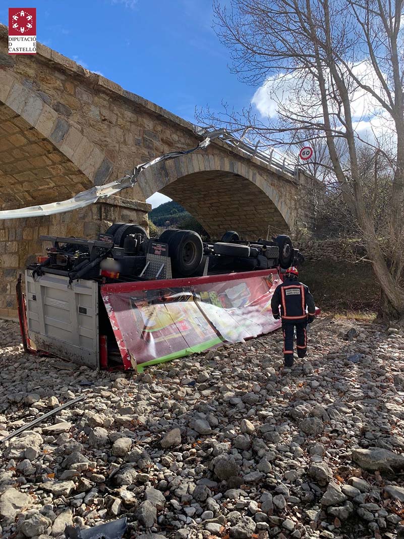 Han colaborado con SAMU en evacuación del conductor herido tras caer camion desde un puente. No estaba atrapado.