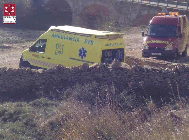 Esta mañana, efectivos de Bomberos Dipcas de los parques Alt Maestrat y Els Ports han intervenido en un accidente de tráfico en Villafranca límite con provincia de Teruel.