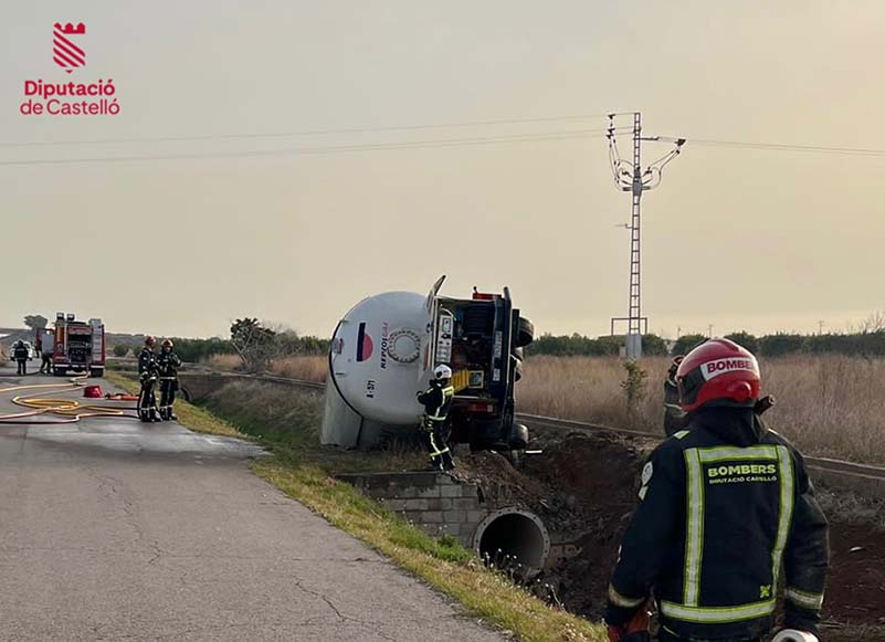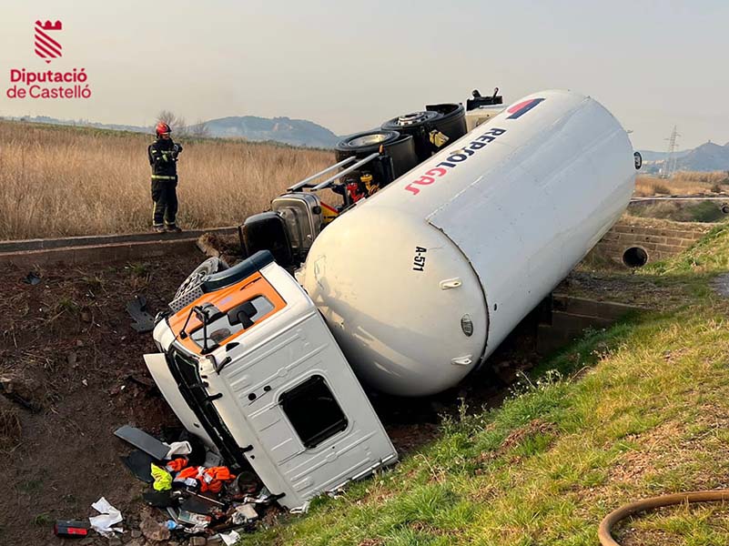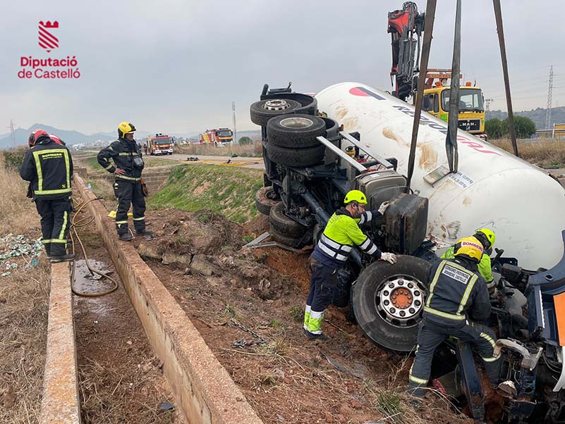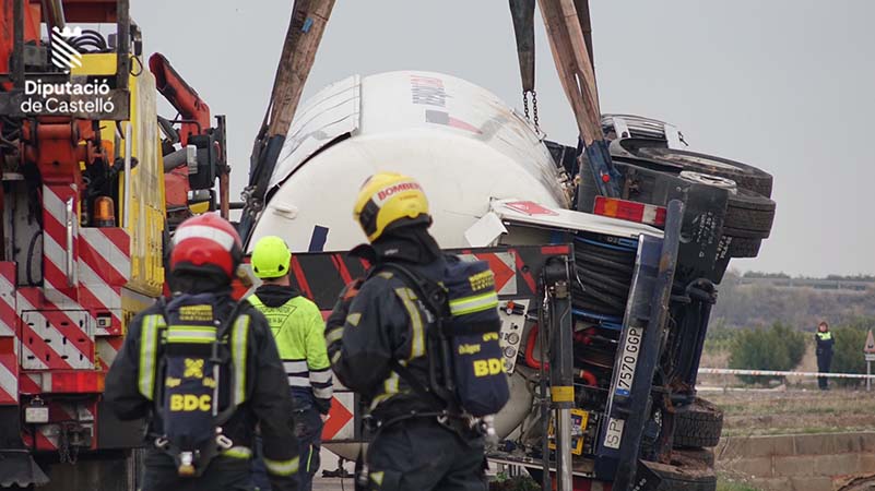 Imágenes servicio accidente TFCO #ADR situación 0 tipo 2 en #AP7 #Moncofa sentido Castelló.