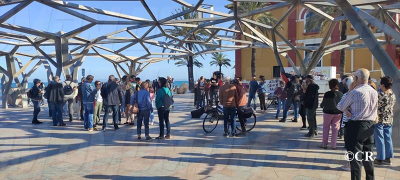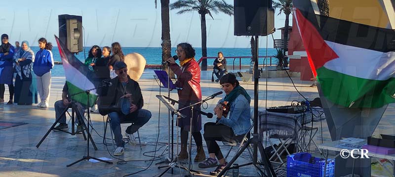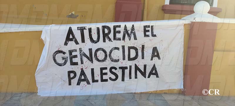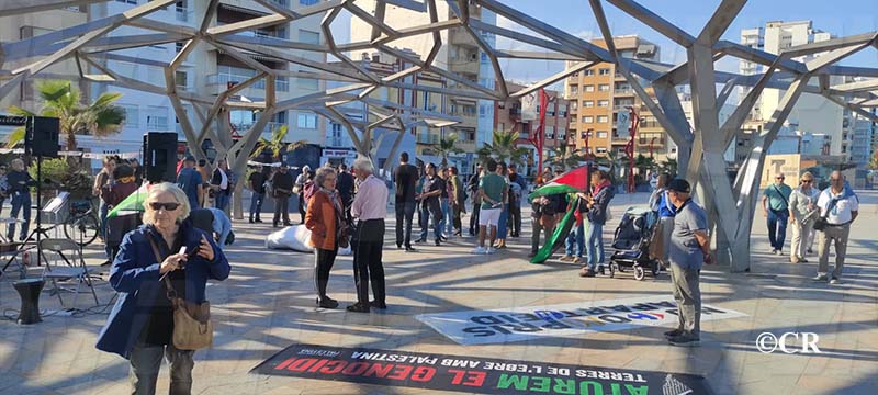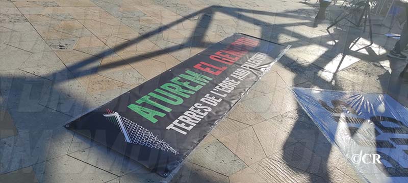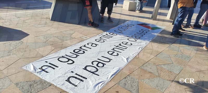 Seguidament, s’ha realitzat la lectura del Manifest de la RESCOP, en el qual s’ha demanat l’alt el foc, l’alçament de les fronteres i la imposició de sancions a Israel.