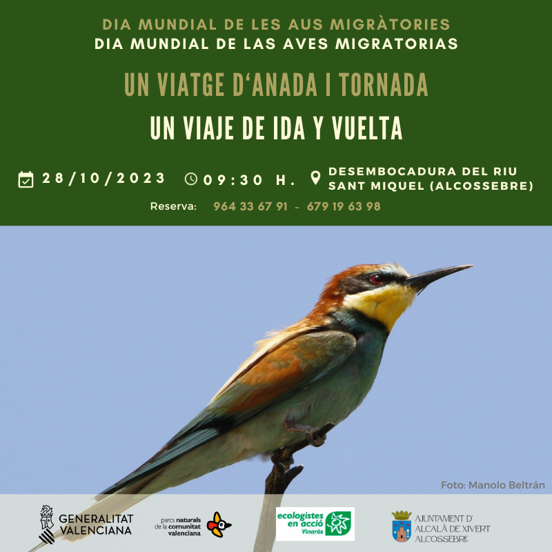 Amb motiu del Dia Mundial de les Aus Migratòries, i en col·laboració amb APNAL- Ecologistes en Acció de Vinaròs, aprendrem a identificar algunes de les espècies de l’entorn natural de la desembocadura del riu Sant Miquel i descobrirem el fascinant comportament d’aquestes incansables viatgeres. (més info)