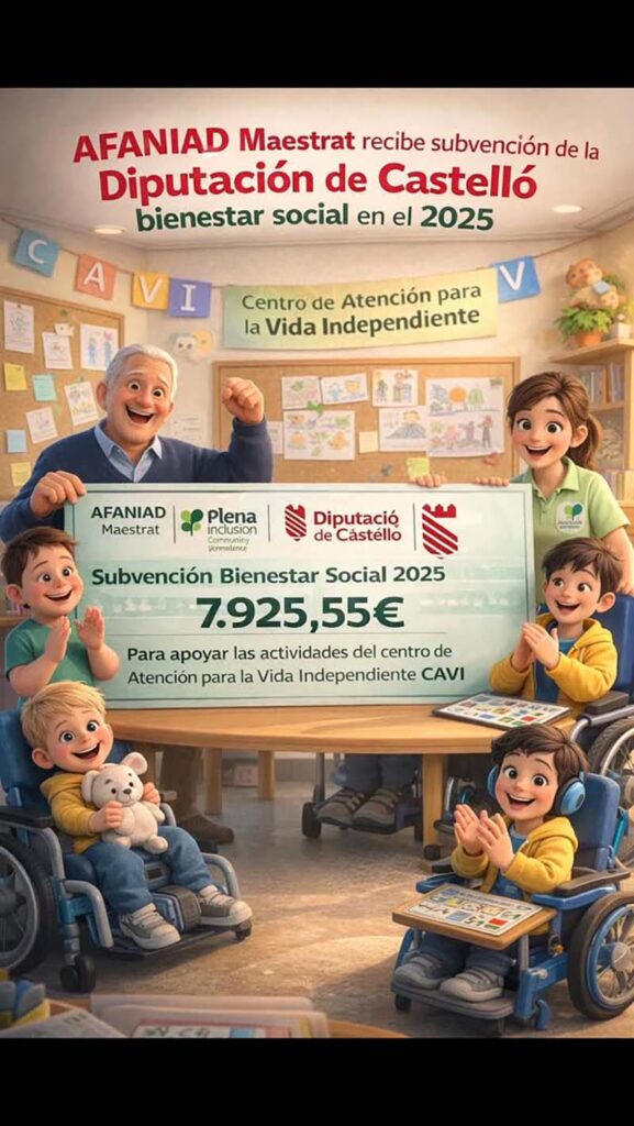 L’entitat AFANIAD Maestrat ha anunciat, a través dels seus canals de difusió, la rebuda d’una subvenció per part de l’àrea de Benestar Social de la Diputació de Castelló.