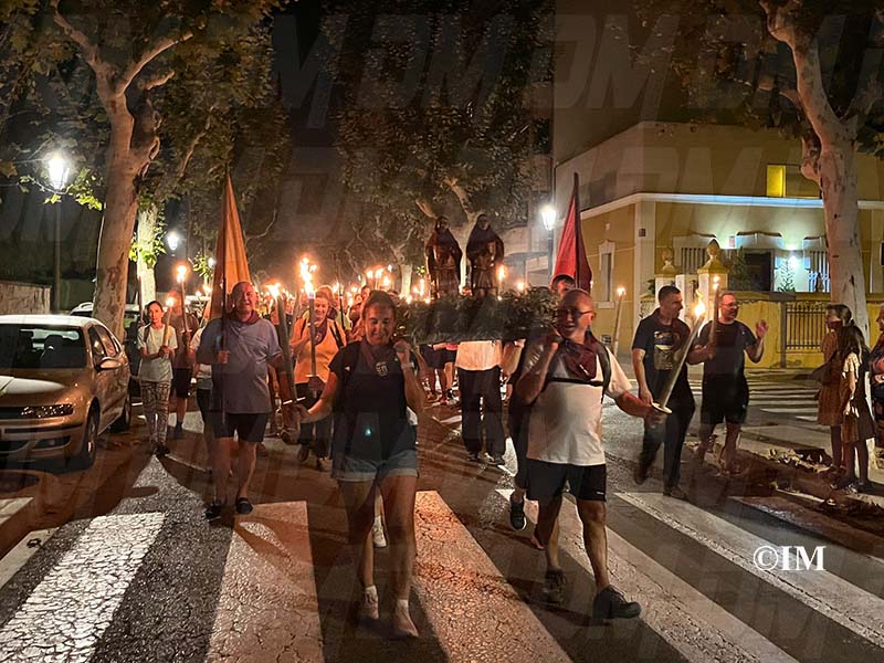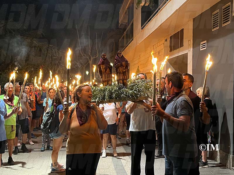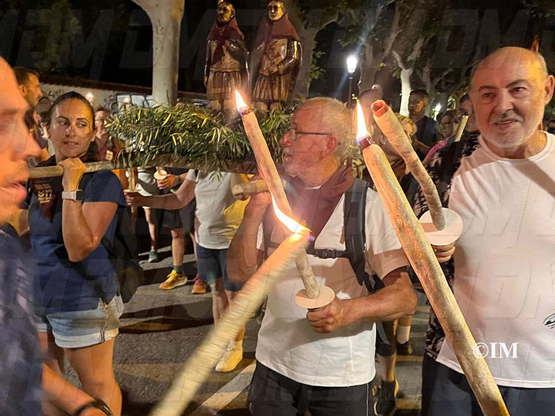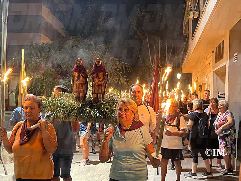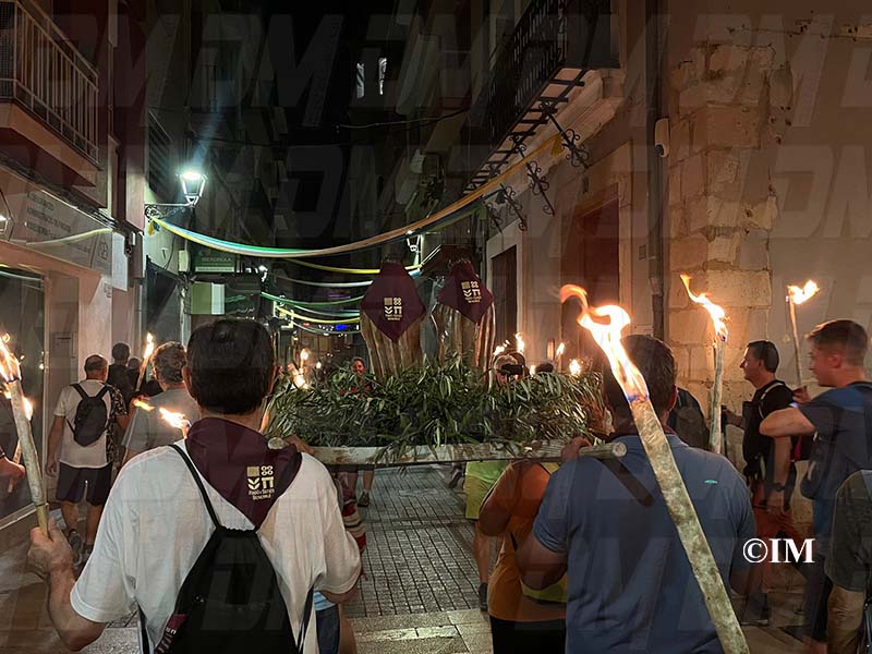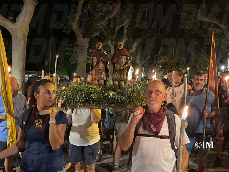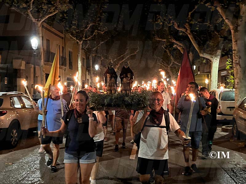 - Passades la 1:30 hores entraven de nou a la població pel passeig de l’estació, on van encendre unes antorxes i van il·luminar el camí dels sants fins a l’església Sant Bartomeu.