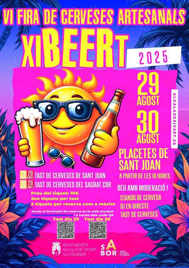 Alcalà de Xivert repeteix un dels actes més multitudinaris de les seues Festes Patronals: la Fira de Cerveses Artesanals XiBEERt, que arriba enguany a la seua sisena edició. El recinte comptarà amb estands de cervesa, tastos i animació de DJ’s i se celebrarà els dies 29 i 30 d’agost, en les placetes de Sant Joan, a partir de les 18.00h. Com en anys anteriors, es realitzaran dos tastos de cerveses, una cada dia de la fira, a les 20.00h.