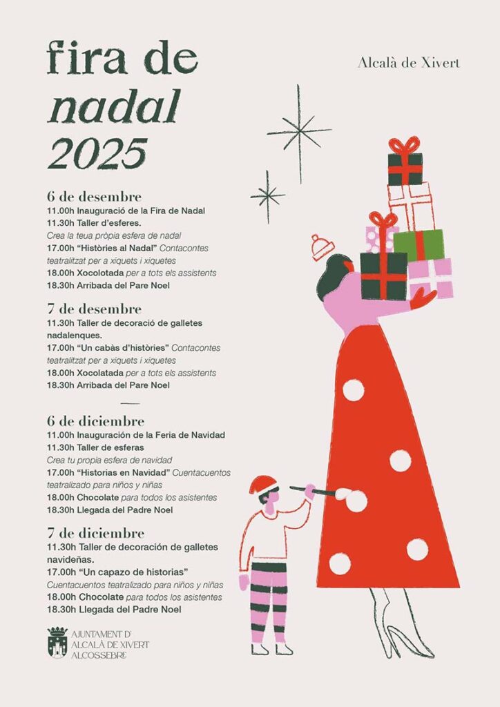 L’esperit nadalenc omplirà Alcalà de Xivert els pròxims 6 i 7 de desembre amb la celebració de la Fira de Nadal 2025, que se situarà a la plaça Doctor Ricardo Cardona i estarà oberta d’11.00 h a 20.00 h.