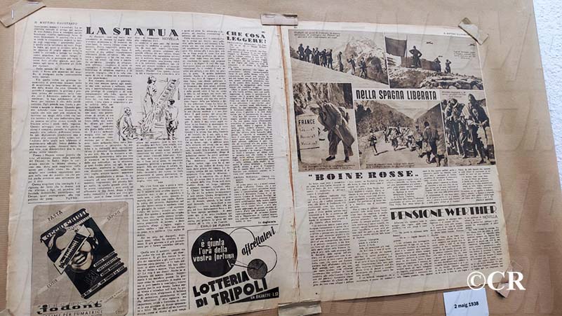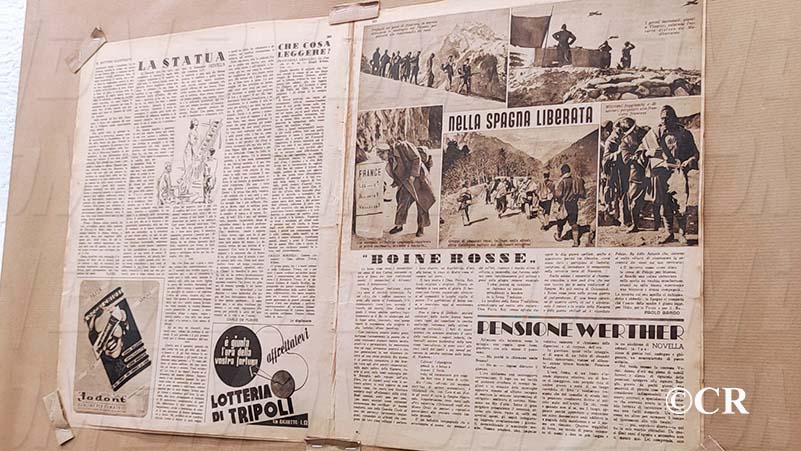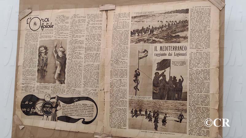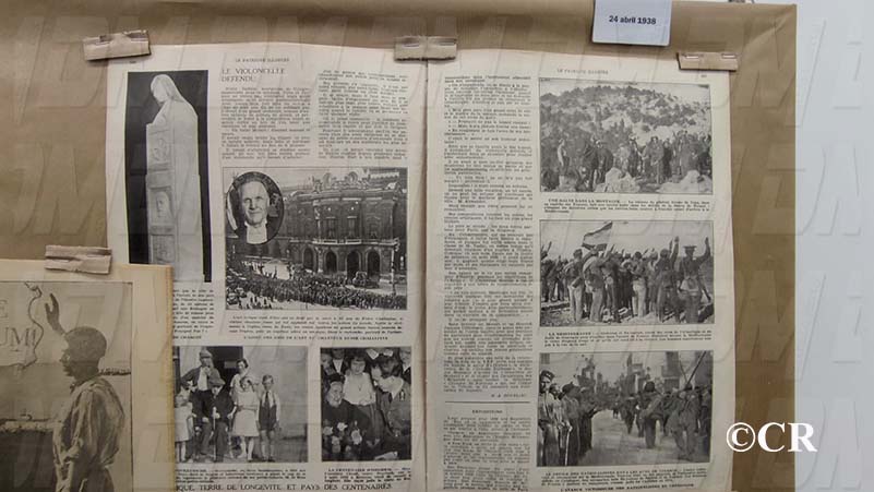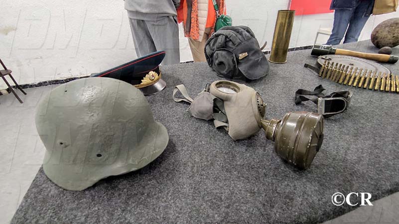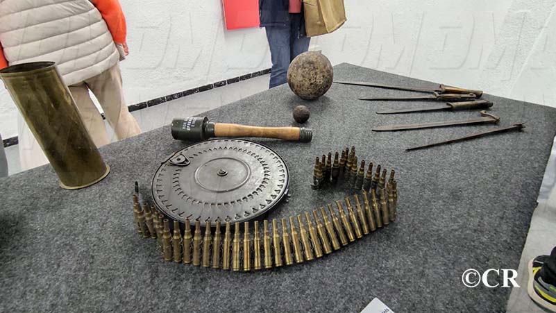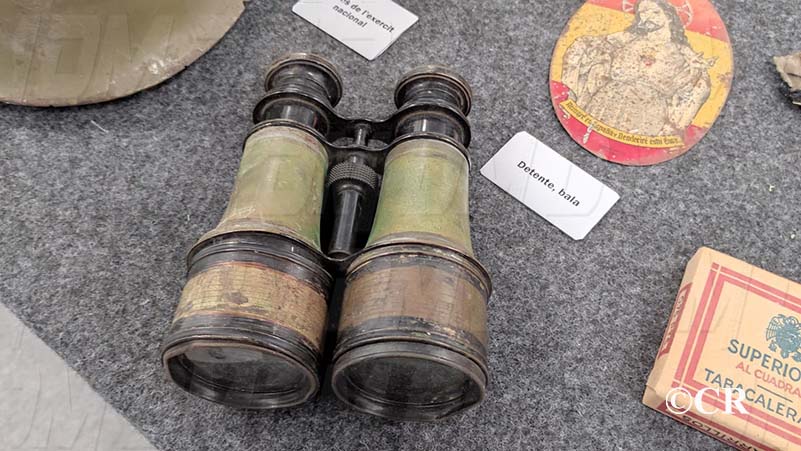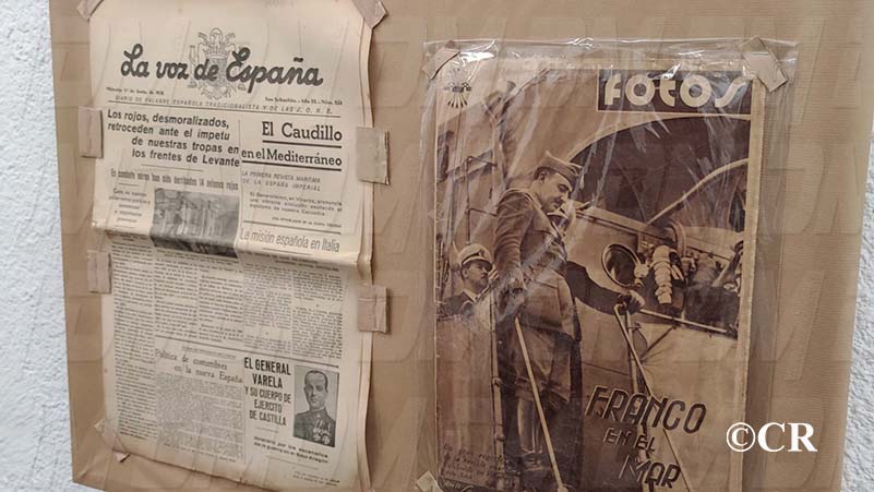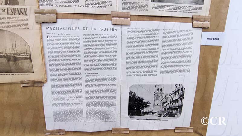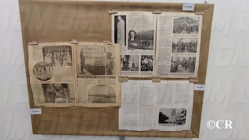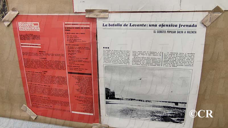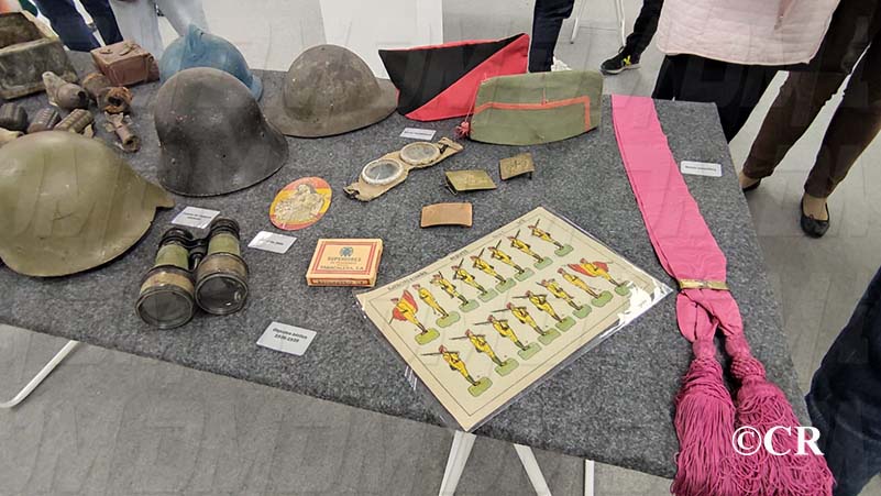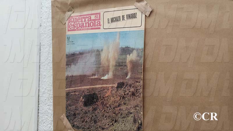 - L’exposició recull, en dues taules, diferents elements bèl·lics recuperats a la ciutat de Vinaròs, així com retalls de premsa sobre l’arribada del bàndol nacional a la capital del Baix Maestrat l’abril de 1938.