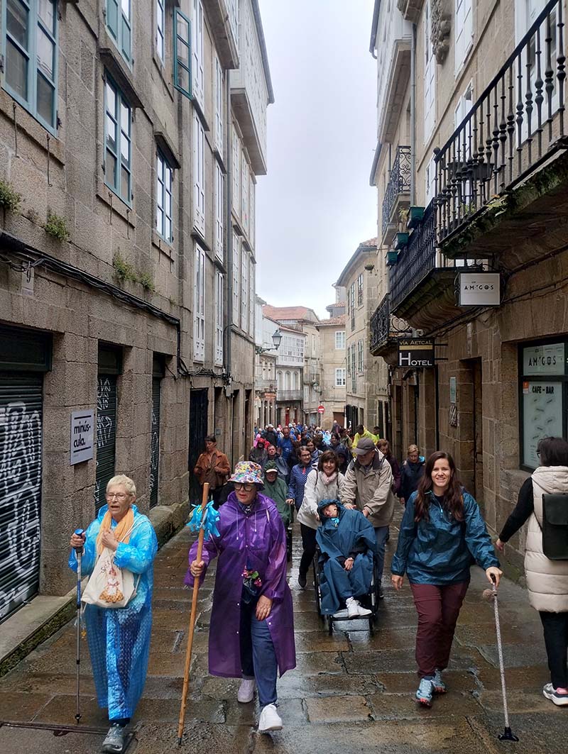 El grupo salió el pasado lunes desde Valencia y Alicante hacia Ourense en tren y posteriormente en autobús hasta Santiago. Al día siguiente iniciaron un itinerario inclusivo del Camino, consistente en 3 etapas cortas que no superaban los 4/5 km al día. El martes realizaron la primera ruta entre Caldeiras do Castro y Vilarmide, el miércoles caminaron entre Noia y la Ría de Muros, y hoy jueves han concluido el Camino al recorrer la distancia entre el Monto do Gozo y la plaza del Obradoiro.
