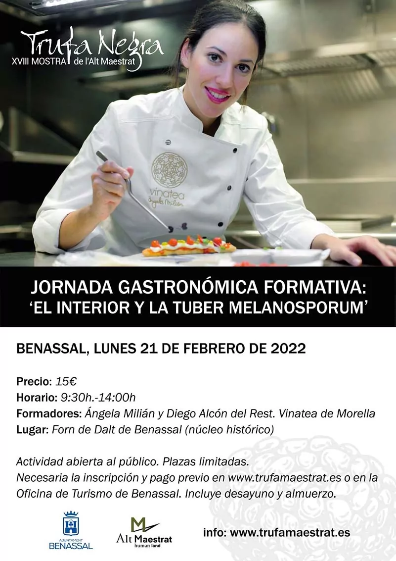 Demà, dilluns 21 de febrer, tindrà lloc l’esdeveniment d’inici de la XVIII Mostra de la Trufa Negra de l’Alt Maestrat en la qual veïns, veïnes i visitants tindran l’oportunitat de gaudir de l’or negre de la gastronomia amb diferents activitats. Així, de 9.30h a 14h en el Forn de Dalt, Ángela Milián i Diego Alcón del restaurant Vinatea de Morella seran els encarregats de guiar la jornada gastronòmica formativa, ‘L’interior i la Tuber Melanosporum’.