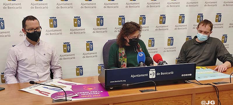 La regidora de Serveis  Socials i Polítiques Inclusives, Gemma Cerdà, acompanyada del regidor de Festes i Falles, Pedro Manchón, i del responsable de Premsa de la Junta Local Fallera, Adrián Octavio, ha presentat avui dos campanyes de sensibilització que es posaran en marxa en el marc de les Falles 2022.