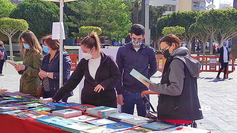 La Fira està oberta des de primera hora del matí a la plaça de la Constitució per a celebrar el Dia del Llibre.
