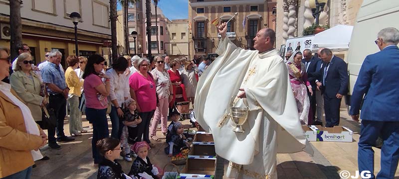 La benedicció dels fruits del camp contava, un any més, amb xiquets i xiquetes amb vestits típics, que van oferir al patró dels agricultors fruites i hortalisses del camp benicarlando.