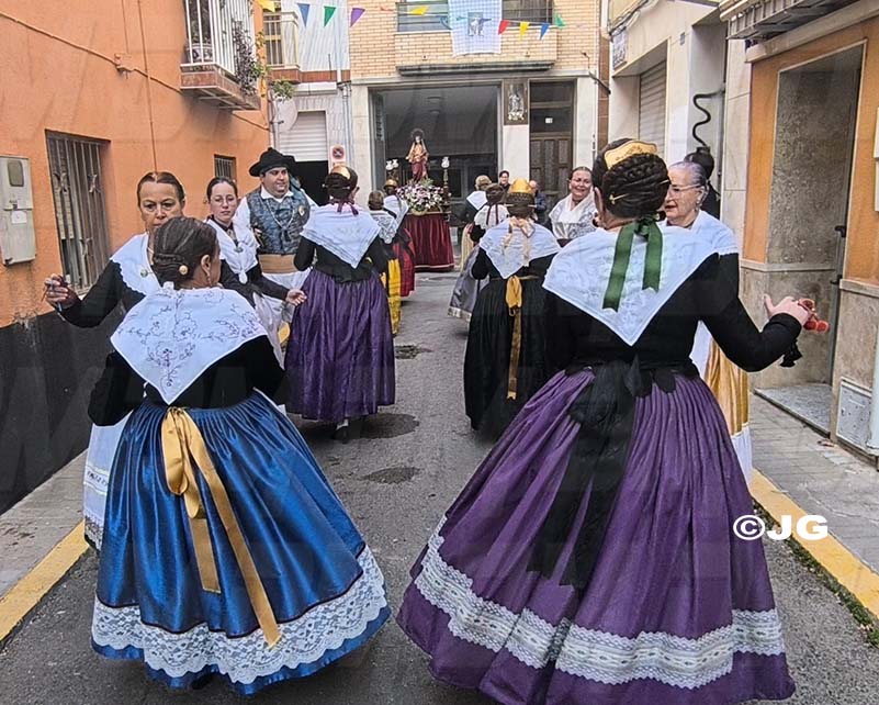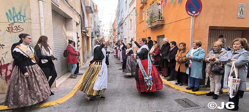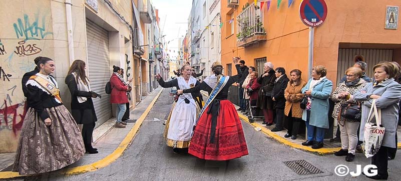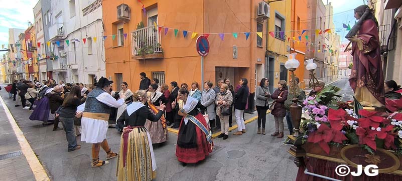 Finalitzada la missa, la festa s’ha traslladat als carrers del barri amb la tradicional cercavila de Santa Bàrbara. La imatge de la patrona ha estat portada pels veïns, acompanyada per la Colla de Dolçainers de Benicarló i el Grup de Danses La Sotà. La jornada ha continuat amb balls i cançons tradicionals, amb la participació destacada de Lucia Cornelles, Balladora d’Honor de La Sotà, que ha emocionat el públic amb la seua actuació.
