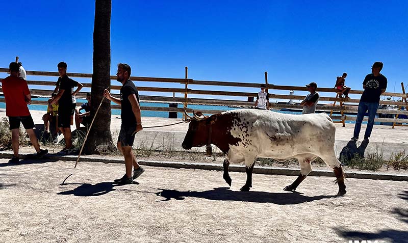 12:00 h Exhibició de bous a la mar de la ramaderia Hermanos Bellés a la plaça de l’esplanada del Port.