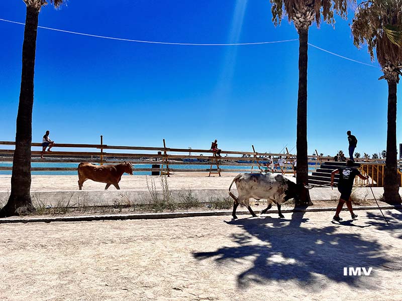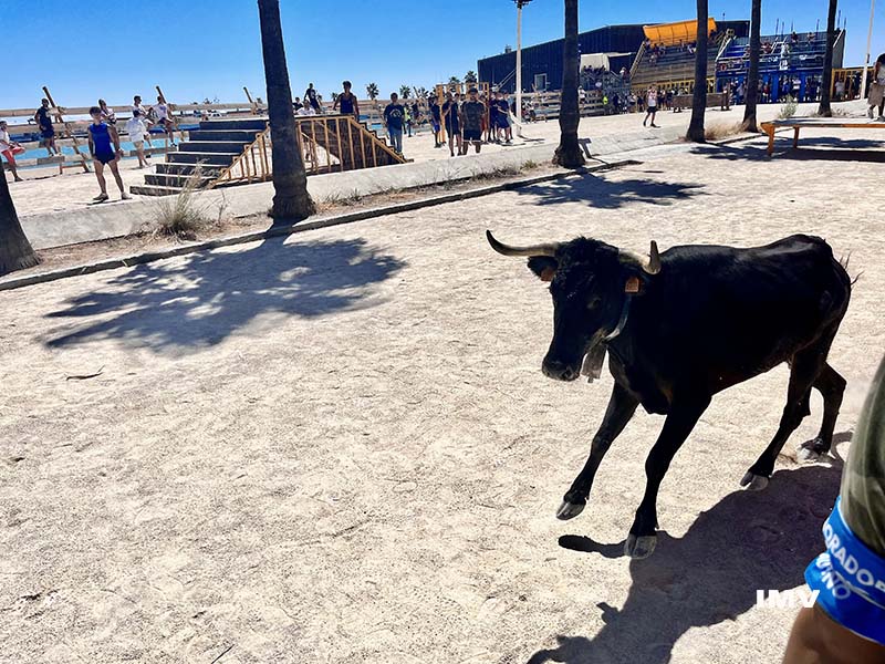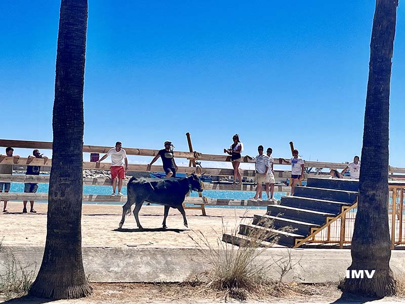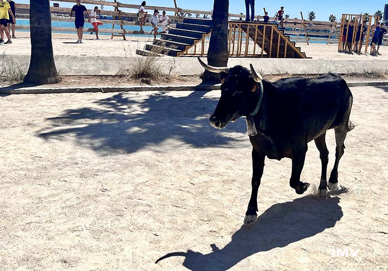 12:00 h Exhibició de bous a la mar de la ramaderia Iván Meseguer a la plaça de l’esplanada del Port.