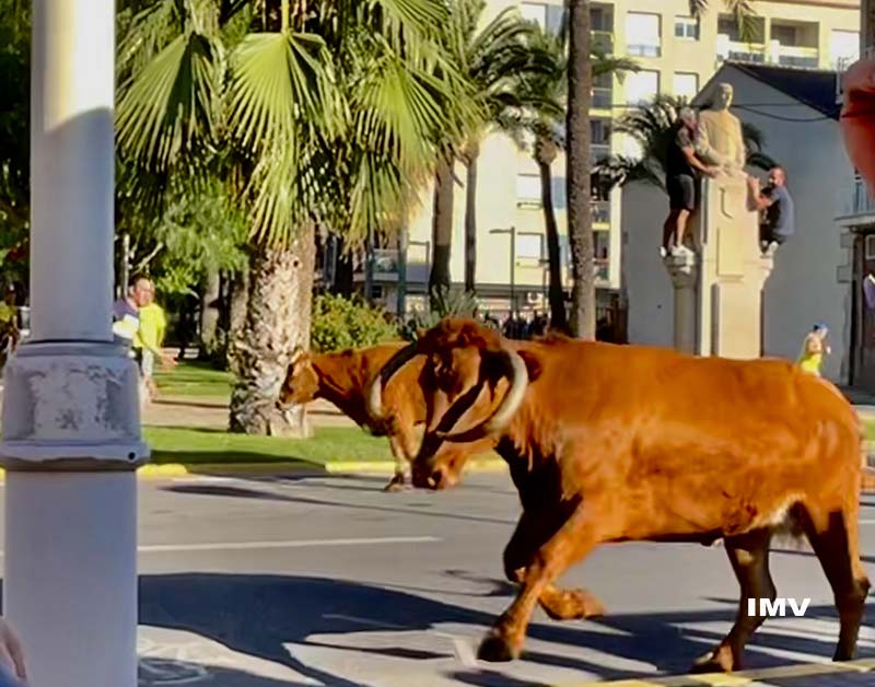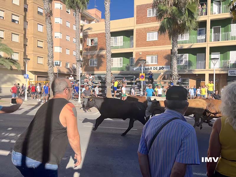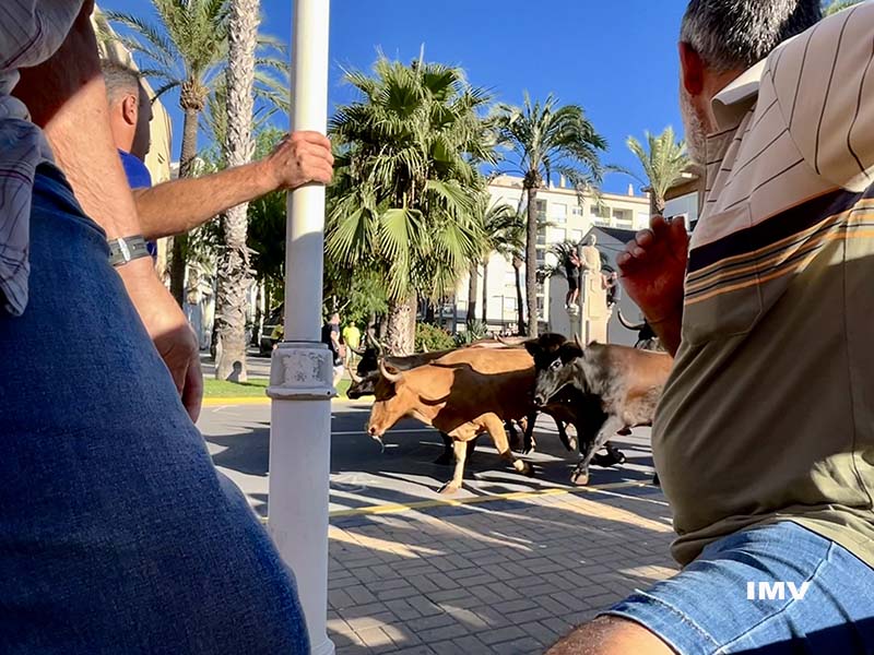 9:00 h Entrada de bestiar boví de la ramaderia Fernando Mansilla. Recorregut: c. del Crist de la Mar, av. del Marqués de Benicarló i esplanada del Port.
