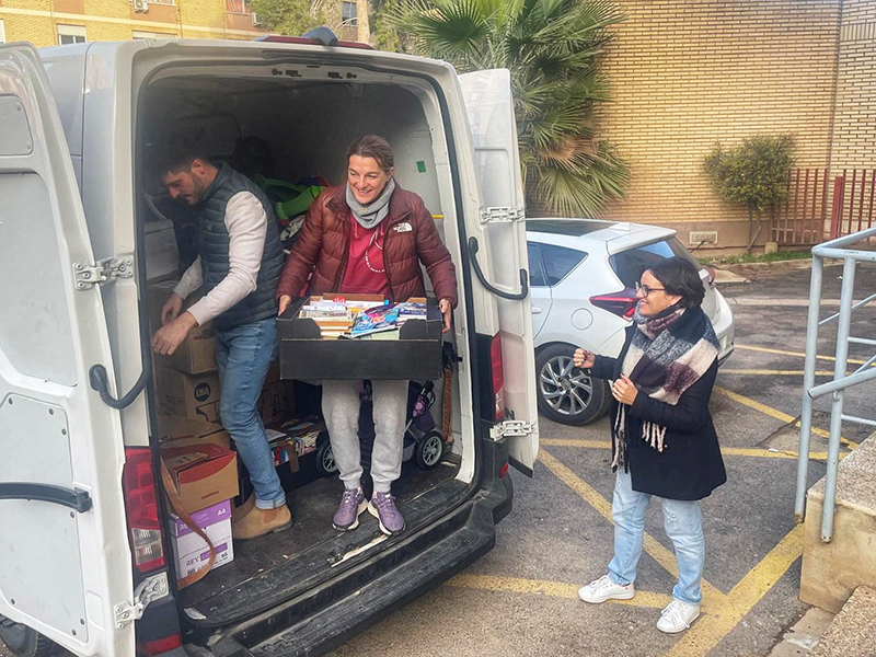 Una comitiva formada pel regidor d’Educació, Carlos Delshorts, i membres dels equips directius de diferents centres educatius de Benicarló, va entregar divendres passat als centres educatius d’Algemesí el material escolar i les joguines recollits en una acció solidària que s’ha dut a terme les últimes setmanes.