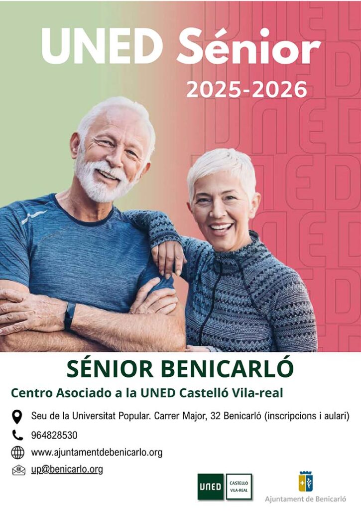 L’Ajuntament de Benicarló ha obert el període de matrícula del programa UNED Sénior, una oferta formativa destinada a persones majors de 55 anys que vulguen continuar aprenent, ampliar coneixements i mantindre una vida activa.